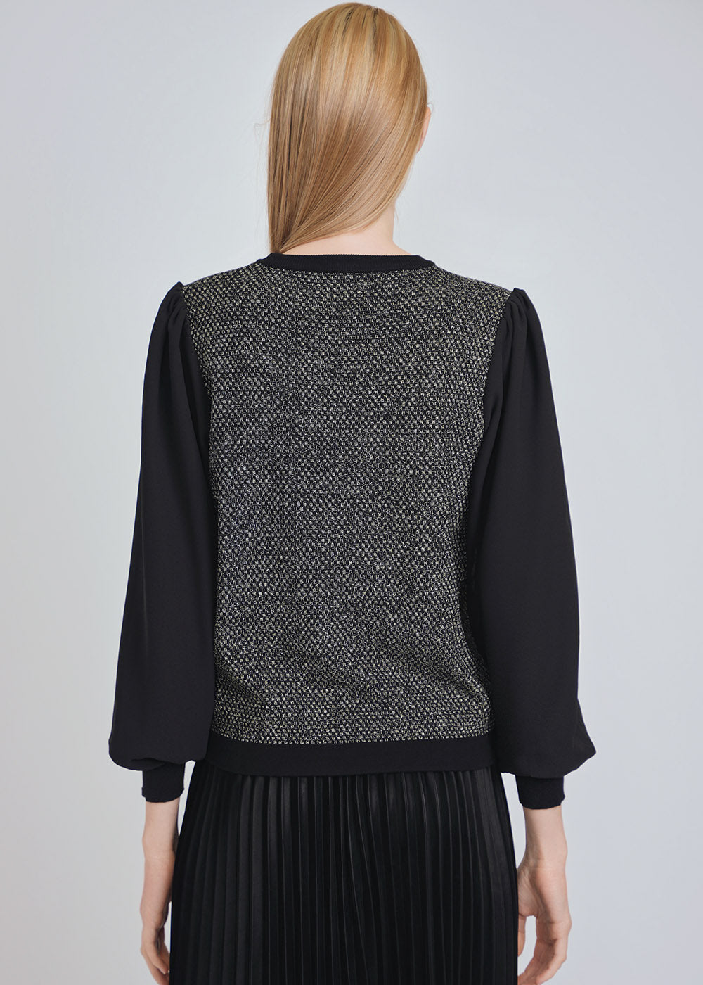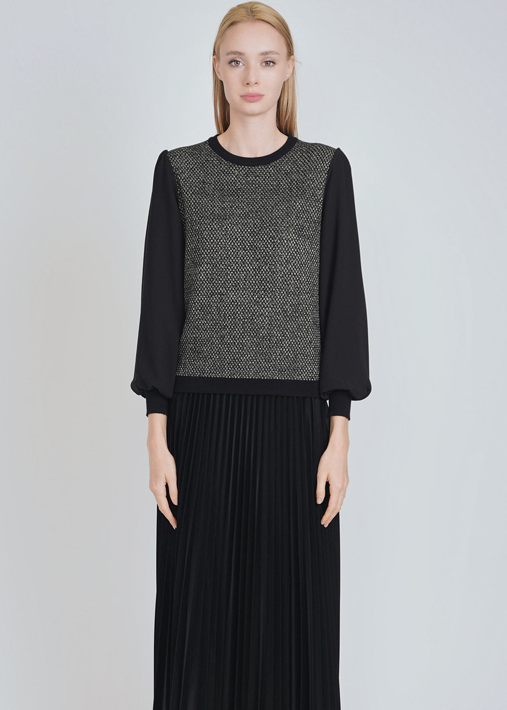 Dual Tone Puffy Sleeve Sweater
